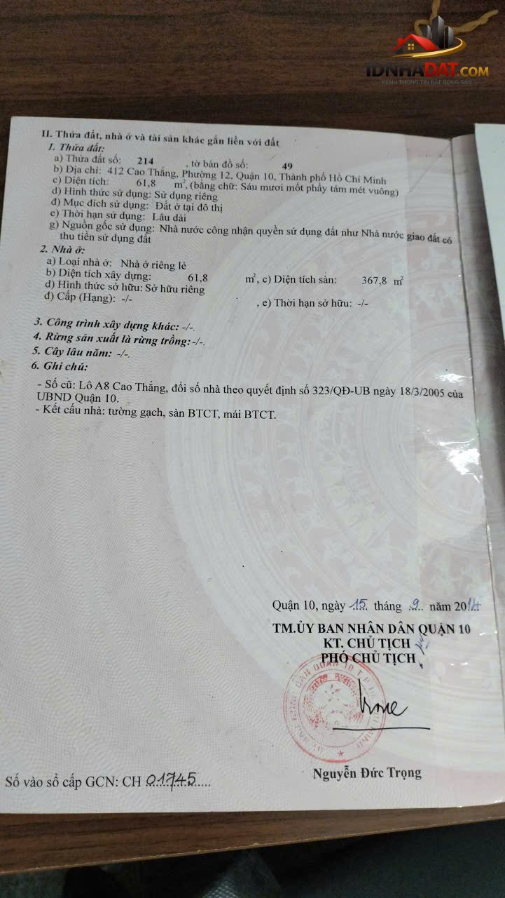 Địa chỉ: MẶT TIỀN CAO THẮNG, QUẬN 10, TP.HCM.