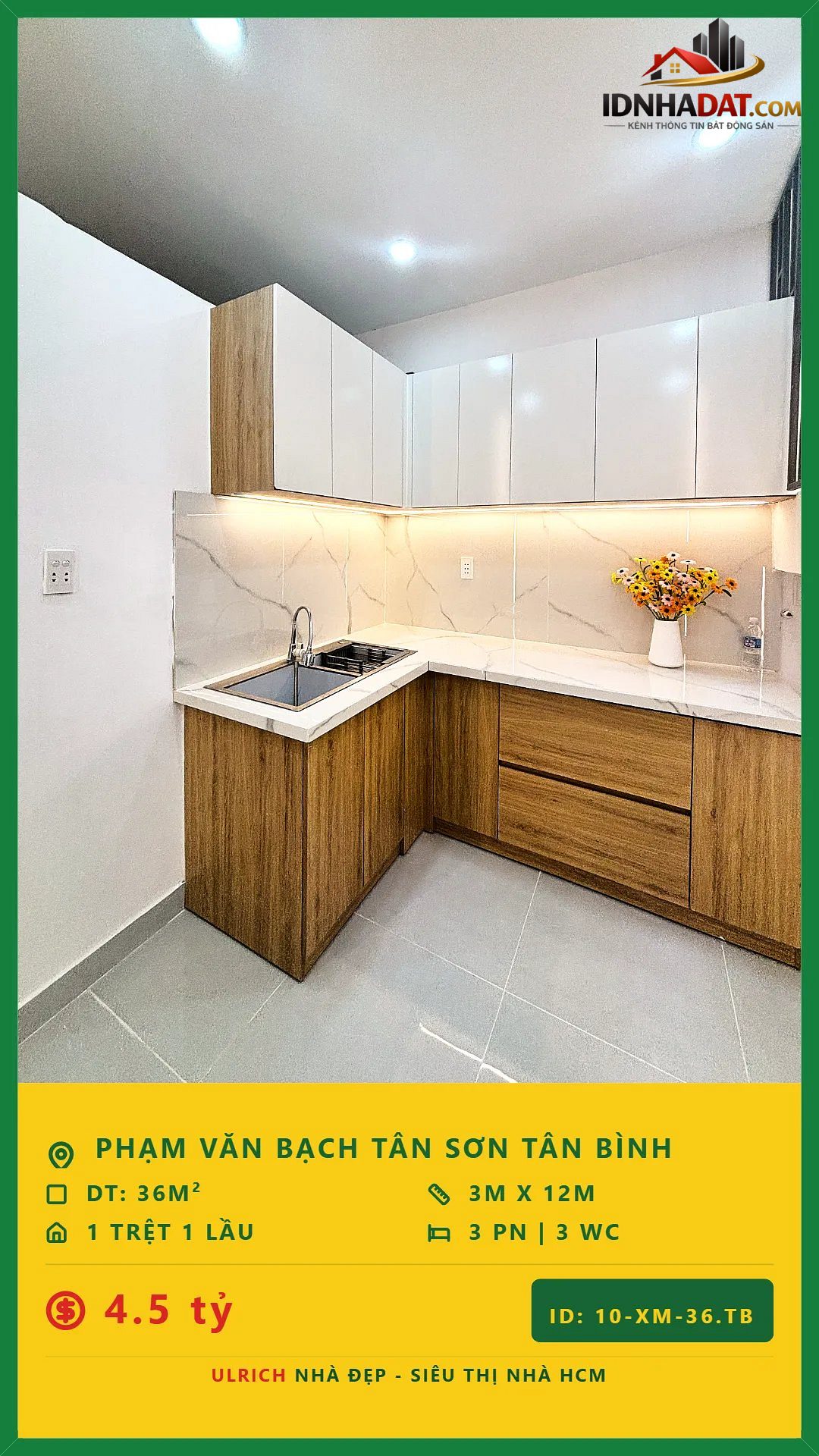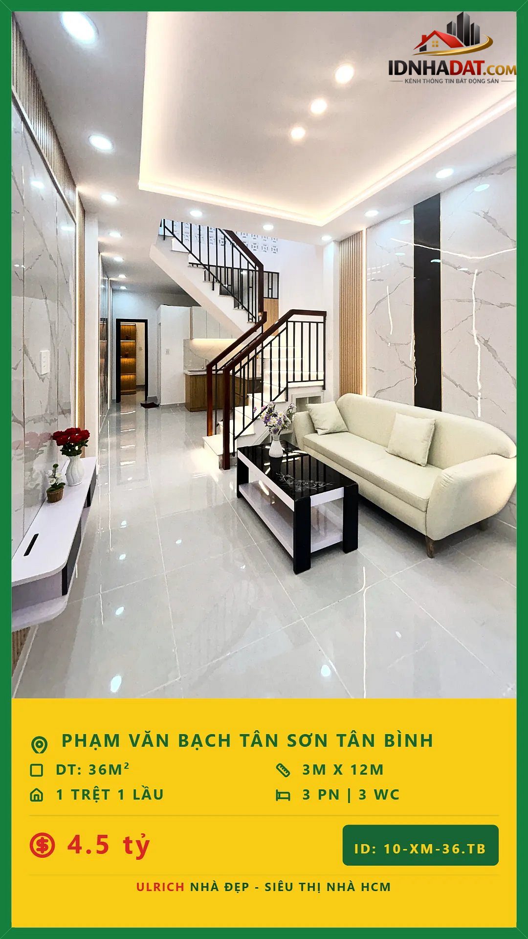 Nhà đẹp nằm trên Đường Phạm Văn Bạch, thuộc Phường Tân Sơn, Quận Tân Bình, TP HCM. Với thiết kế 2 tầng, ngôi nhà này có diện tích 36m² (Ngang 3m × Dài 12m) và được xây dựng với 2 phòng ngủ2 WC.